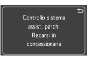 Potrebbe esserci un'anomalia nel sistema. → Spegnere l'interruttore di alimentazione e avviare il sistema ibrido. Se il messaggio viene visualizzato nuovamente, far controllare il veicolo da un concessionario o un'officina autorizzata Toyota, o da un altro professionista debitamente qualificato ed attrezzato. |